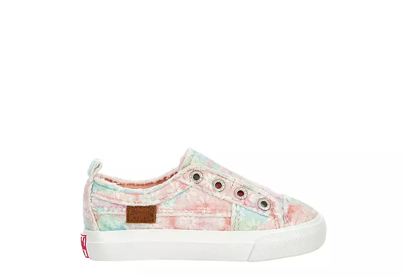 Give her sporty tyle in the super cute Play-T infant girls’ sneaker from Blowfish. With a stitched canvas upper featuring frayed edges and cool distressed details, this slip-on sneaker will become a staple of your daughter’s wardrobe. The slip-on sneaker goes on even easier with a helpful rear pull tab.Â