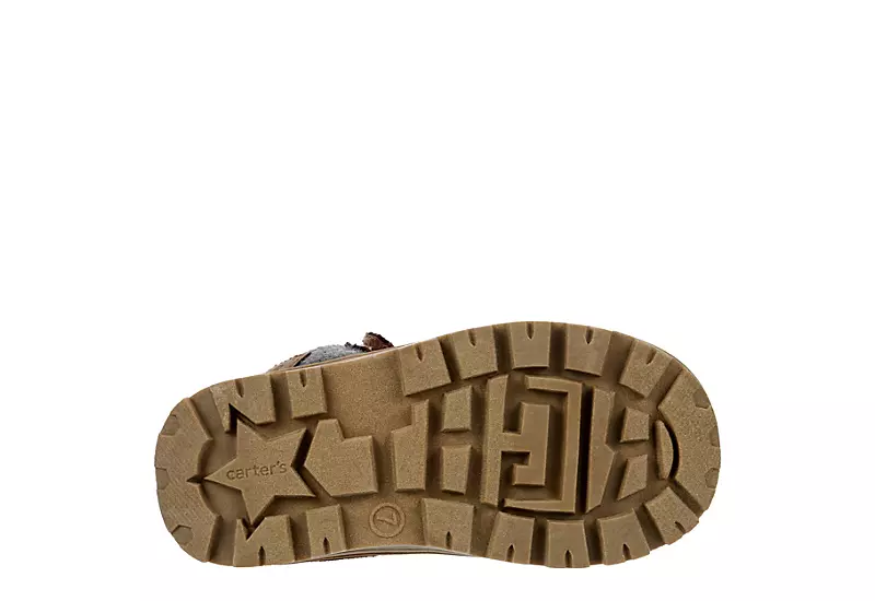 Ensure his feet are warm and cozy in the Carters New infant boys’ rain boot. With a faux leather upper featuring an adjustable hook & loop strap, these lace-up rain boots will look great in that fashionable duck boot style. The cushioned insole will keep his little feet comfortable, while the traction outsole protects against slips in the rain.