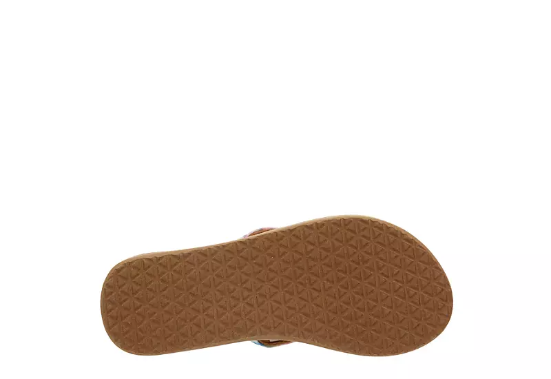 She’ll look cute and stylish in the Isla girls’ flip flop sandal from Cupcake Couture. With a multi-colored fabric and rubber upper, this open-toe sandal is perfect for walking or lounging around. The padded footbed cushions her foot, while the rubber outsole provides slip-resistant traction. Â