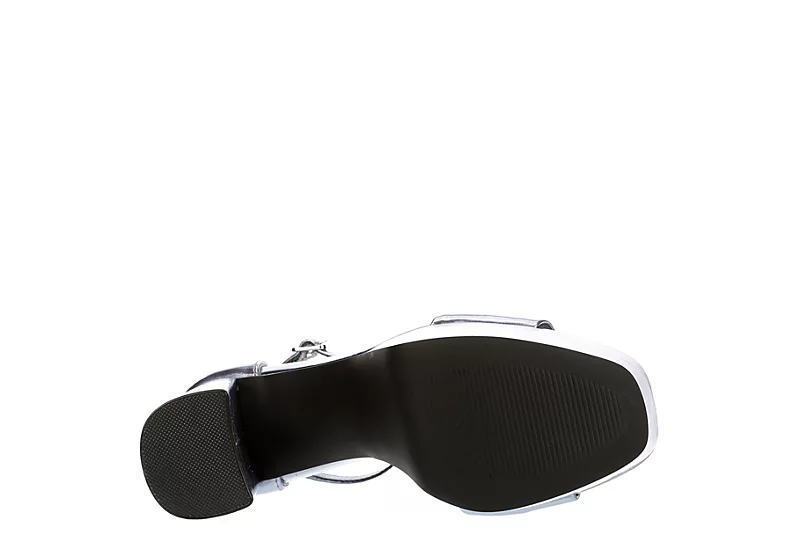 Set the tone in the Omega women’s platform sandal from Madden Girl. With a metallic faux leather upper featuring a square toe for extra style, this ankle buckle strap sandal is retro-inspired but will elevate your current fashion trends. The chunky platform heel stands 4 1/2″ tall and looks fantastic with jeans, miniskirts, and dressy shorts.